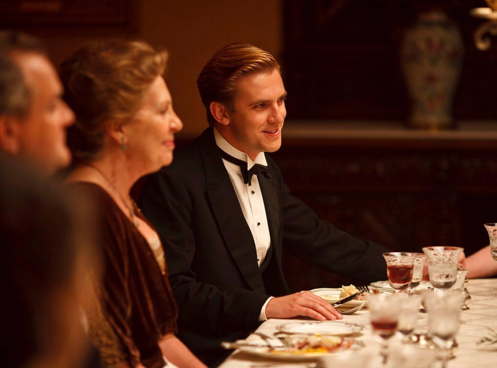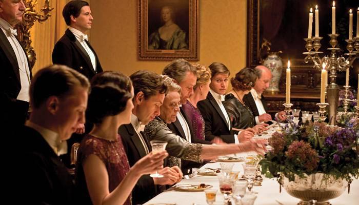 《唐頓莊園》中,餐桌上的客人都是以女士為主,但按照傳統(tǒng),是以男—女—男—女的順序就座。而已婚夫婦則會被分開就坐,因為通常認為他們待在一起的時間已夠長了。