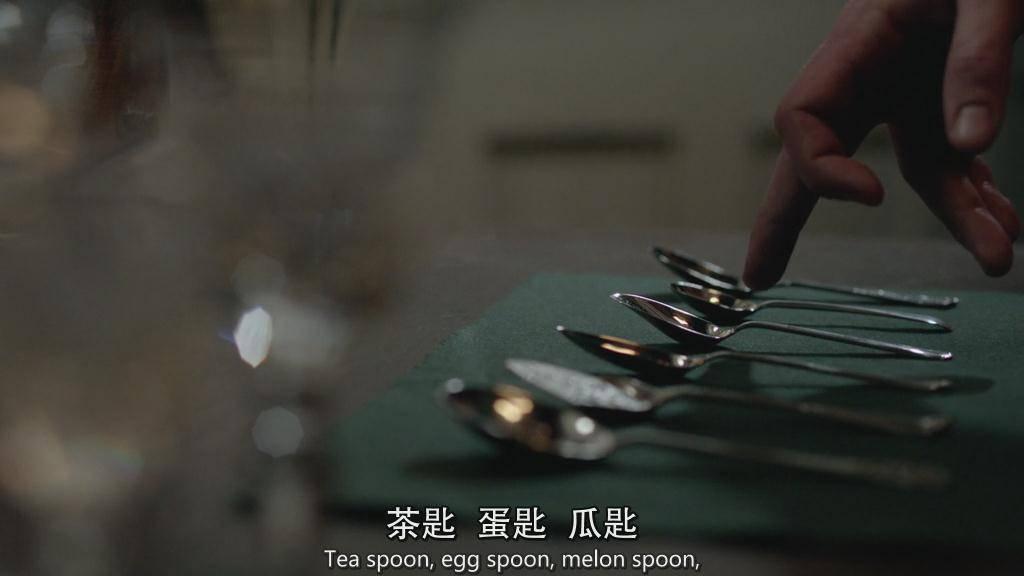 確定一個初級刻度,然后把第一把餐刀推進去。然后你按照第一個標(biāo)準(zhǔn),把其他餐具一點點推到一個水平線上。每個餐具之間的必須是等距離的,對稱的。然后管家們會躬身,用量尺抵住椅子側(cè)面,將椅子拉出來,最后看看整個一排椅子是否在一條直線。