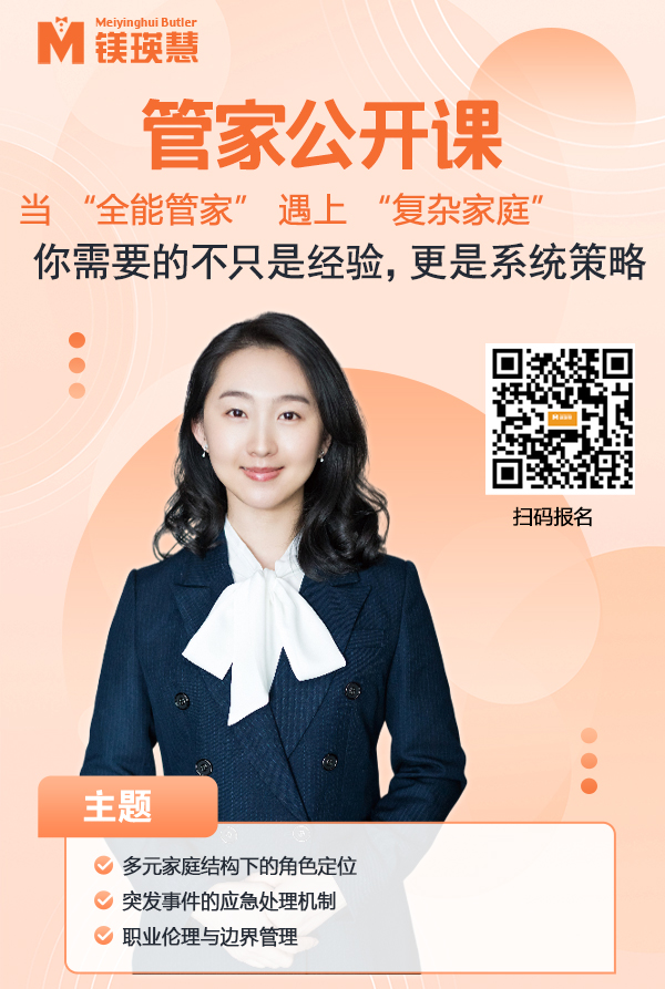 本次分享會(huì)將由鎂瑛慧國(guó)際管家學(xué)院資深導(dǎo)師團(tuán)隊(duì)領(lǐng)銜,結(jié)合多年一線服務(wù)經(jīng)驗(yàn)與國(guó)際標(biāo)準(zhǔn)體系,深入剖析真實(shí)案例,系統(tǒng)梳理職業(yè)管家在復(fù)雜家庭場(chǎng)景中所面臨的典型挑戰(zhàn),并提供可落地的應(yīng)對(duì)策略。內(nèi)容涵蓋: