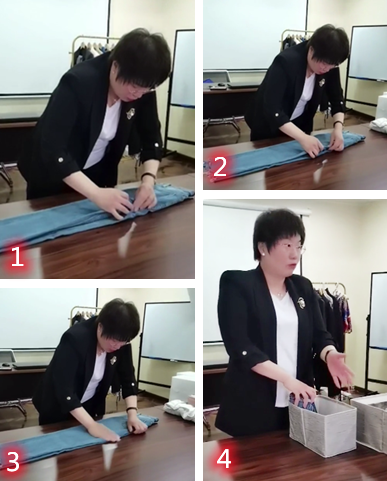 1、褲子的折疊收納方法: